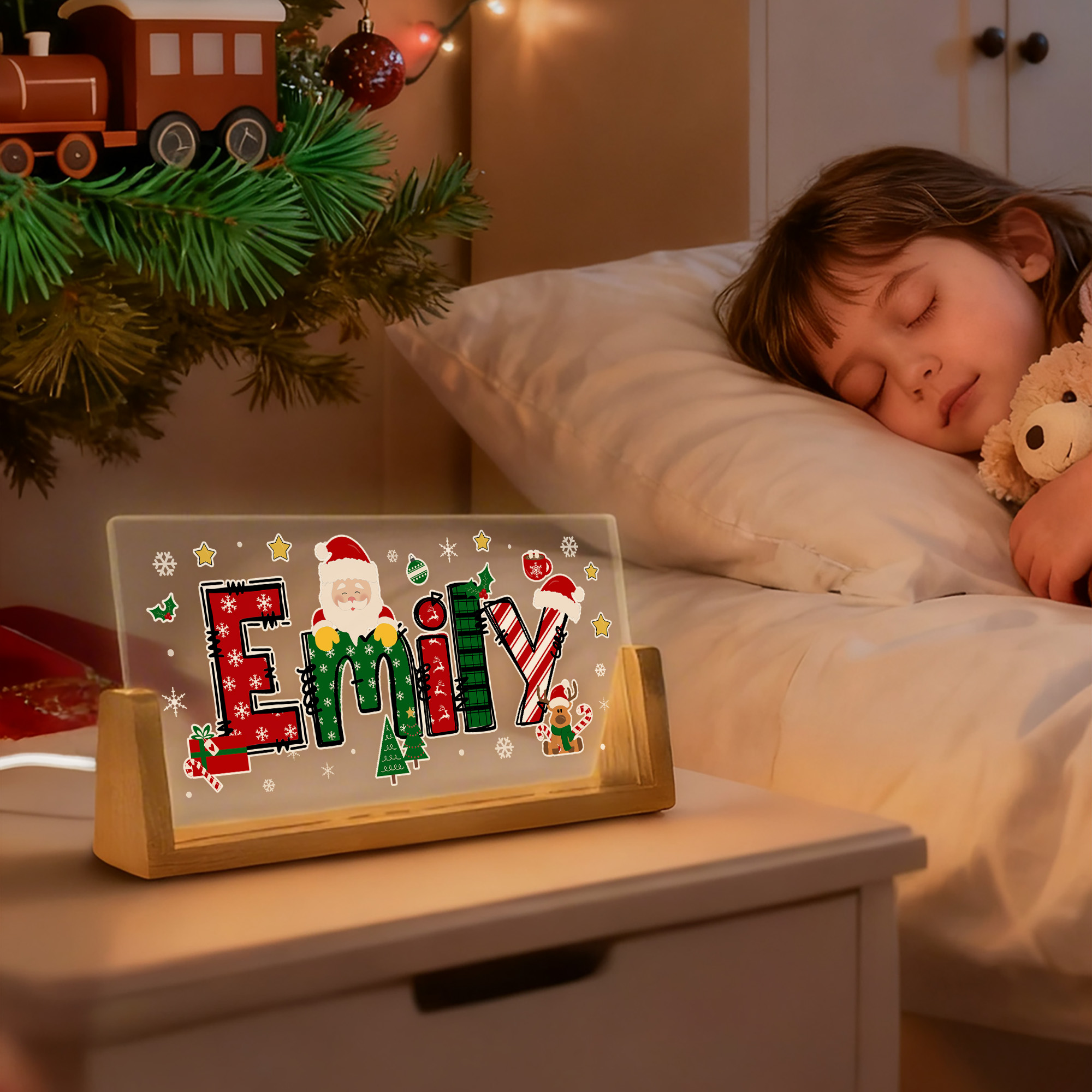 Personalized Name Cartoon Christmas Theme LED Night Light, Acrylic Night Lamp with Wooden Base, Home Decor, Christmas Gift for Kids/Family/Friends