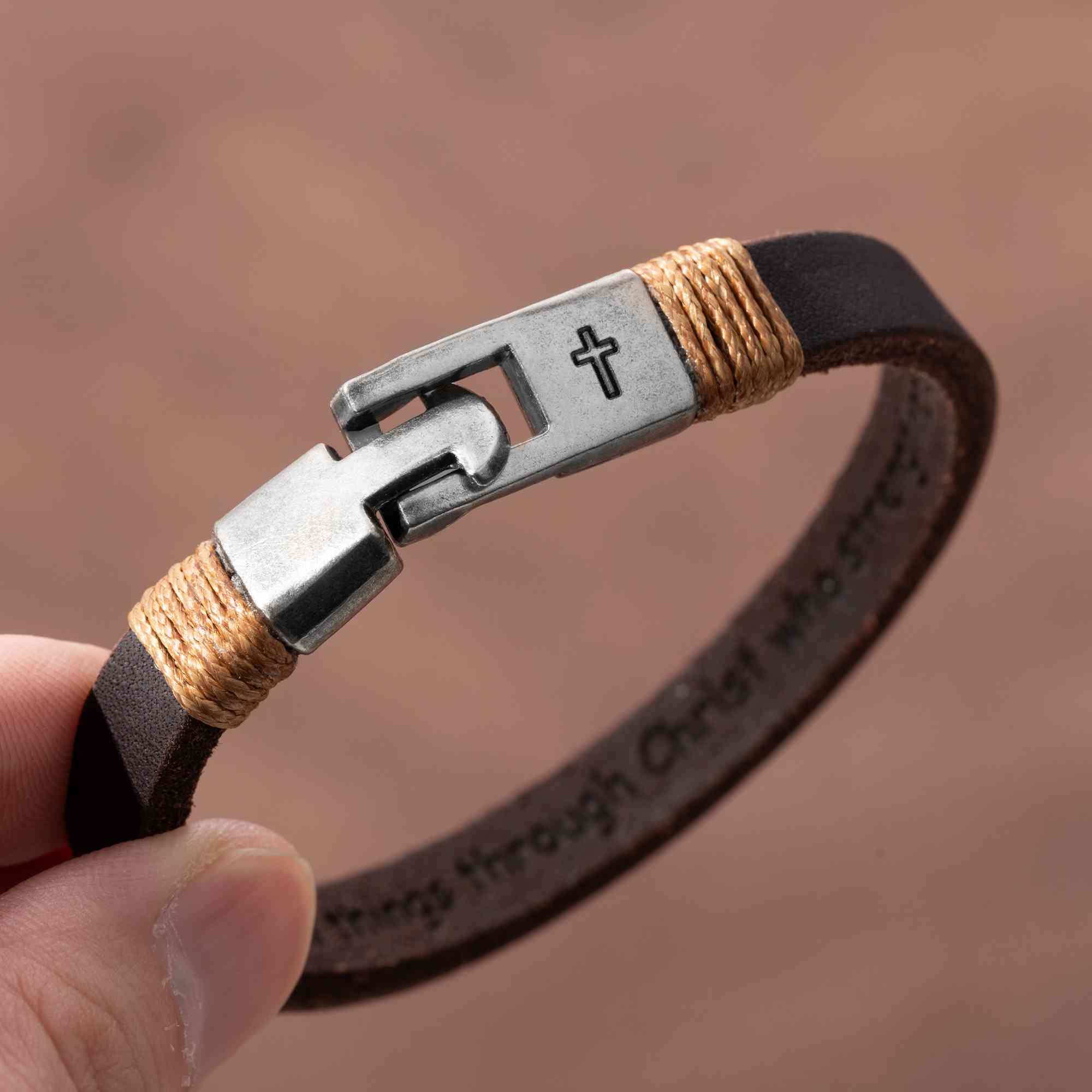 Unisex Cross Leather Bracelet For Men Personalized Gift For Husband Anniversary Dad Engraved Religious Jewelry For Him Men Custom Bracelets
